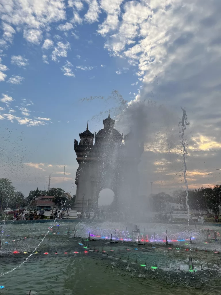 Auf dem Weg zurück zum Hotel kamen wir noch an einem „Triumpfbogen“ vorbei, bei dem unsere Truppe aussteigen durfte und weitere Bilder schießen konnten. Abends werden die Wasserspiele in Szene gesetzt. Mit Musik und Lichtspiel konnten wir diesem Schauspiel beiwohnen.