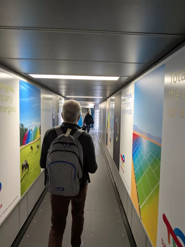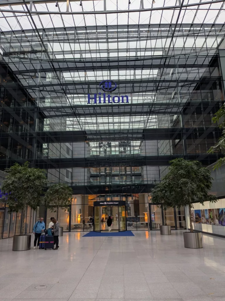 Um 8.45 Uhr verließen wir das wunderschöne Hotel und machten uns auf Schusters Rappen auf zum Check-in, der am Terminal 2 sein soll. Wir folgten den Schildern und alsdann fanden wir uns an einer Bushaltestelle mit ganz vielen anderen Reisenden mit ihren großen Koffern und Handgepäckstücken wieder. Tja, Frankfurt ist ein großes Drehkreuz für internationale Flüge und die Strecken zwischen den Terminals sind zum Teil riesig. Der erste überfüllte Bus fuhr an uns vorbei und wir hofften beim nächsten mitfahren zu können. Als wir dann einsteigen durften, mussten wir feststellen, dass es Sitzplätze und wenig Platz für Koffer gab. Wer macht denn so eine blöde Planung an einem Flughafen? Ist doch klar, dass das so nicht funktionieren kann. Wäre es nicht besser nur Stehplätze zu machen oder ein Abteil für die Koffer? Wir blockierten einen Vierersitzplatz mit unseren Koffern und bewunderten das Tetris-Spiel, das sich uns bot. Am Terminal 2 suchten wir dann die Gepäckaufgabe, die um diese Uhrzeit aber noch geschlossen war. Auf Anfrage erfuhren wir, dass sie in 15 Minuten öffnet. Also stellten wir uns schon mal an. In der Wartezeit fiel uns ein, dass wir ja unsere Jacken im Koffer verstauen können, da wir ab jetzt nur noch in Gebäuden oder im Warmen uns aufhalten werden. So hatten wir schon etwas weniger, das man mit sich rumtragen muss. In der Loung angekommen, konnten wir uns entspannt an einen Tisch setzen und bei einem Frühstück auf unser Boarding warten.