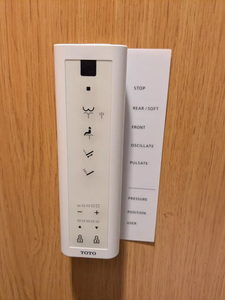 Die Lounge gehört zu Japan Airlines und die Toiletten sehen schon sehr asiatisch aus. Ich bekam schon den ersten Vorgeschmack auf das, was da noch kommt. Die Klobrille war schon fast unangenehm warm und es gab eine Fernbedienung, um sich den Po abzuwaschen und alles war mit so komischen Schriftzeichen versehen.