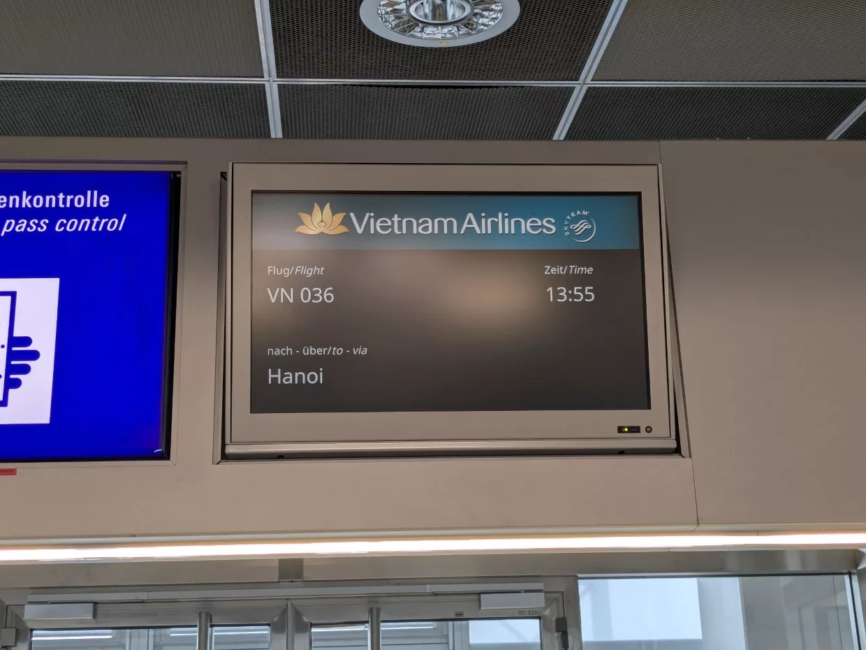 Nach einem sehr ruhigen, aber langen, Flug landeten wir um Punkt 6 Uhr morgens in Hanoi, bzw. Mitternacht bei euch.