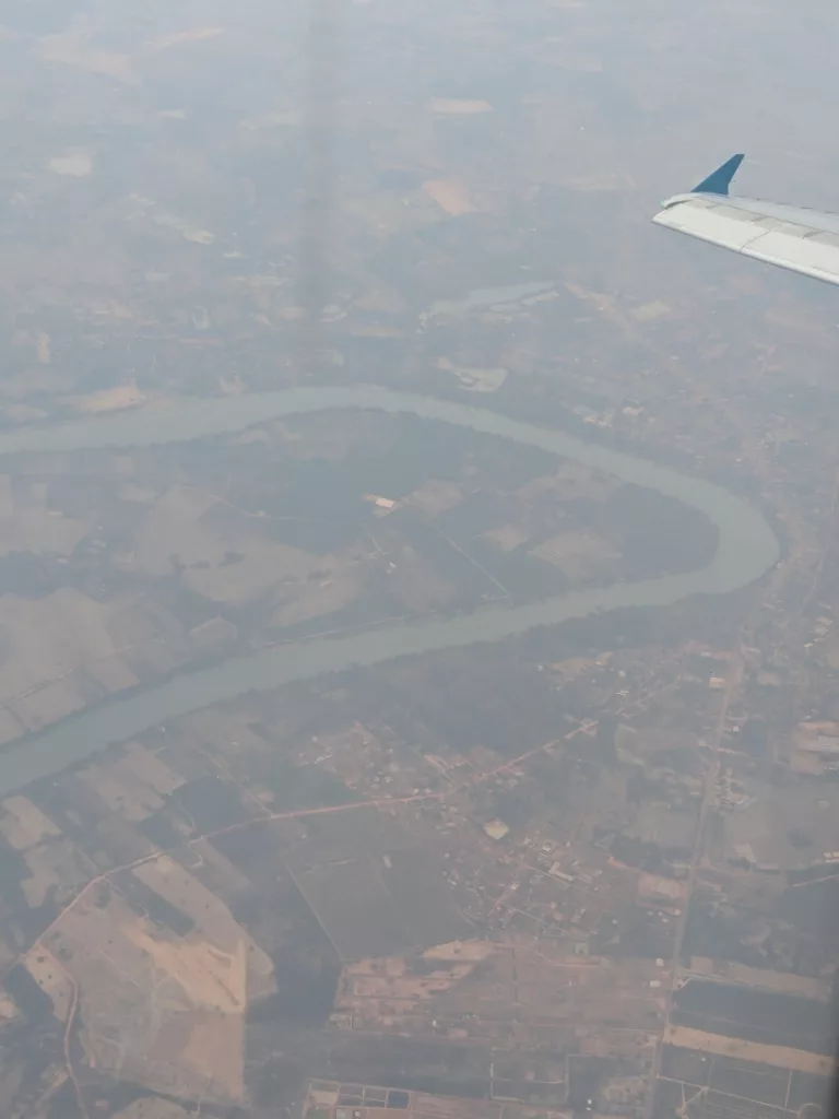 Als es dann weiter ging, trafen wir unsere Reisegruppe (mit uns 22 Teilnehmern) am Gate. Die Reiseleitung stammt ursprünglich aus Vietnam, lebt aber seit ihrem Kindergartenalter in Deutschland. Der Flug in die Hauptstadt von Laos (Vietiane) war ein kleiner Hüpfer. Nach nur 45 Minuten landeten wir wieder. Beim Anflug konnte ich das erste Mal in meinem Leben den Mekong sehen.