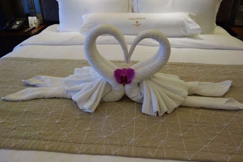 Im Zimmer erwartete uns ein Schwanenpaar auf dem Bett.