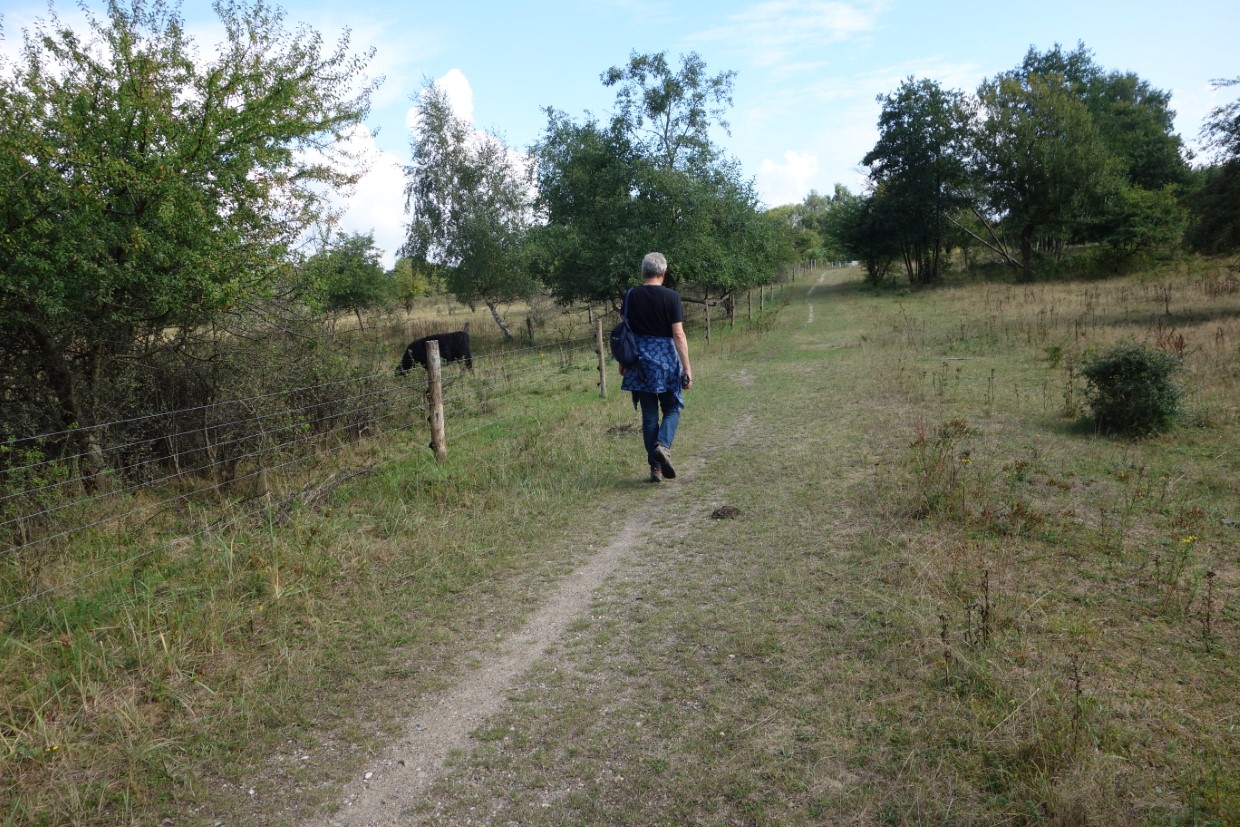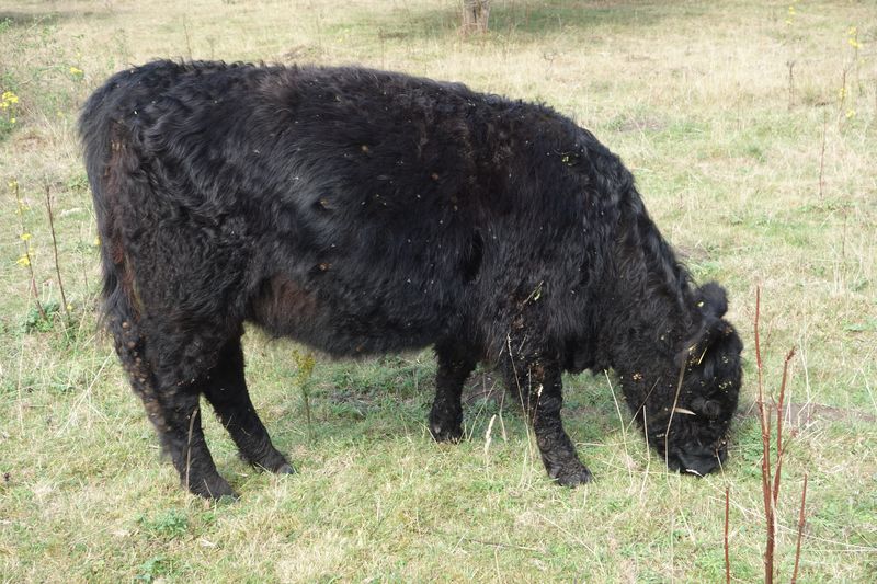 Zurück auf der Uferpromenade verweilten wir noch etwas bevor es zu unserem nächsten Ziel, Hamburg, ging. Ich hatte langsam genügend Straßen und Häuser gesehen und hatte den Drang wieder in die grüne Natur einzutauchen. Deshalb suchte ich eine kleine Wanderung raus, die zwischen Travemünde und Hamburg liegt. Hier liefen wir ein kleines Stück. Damit die Wiesen frei von Bäumen bleiben, dürfen Rinder sie abweiden. Im Fell der Tiere haben sich viele Kletten verfangen und der Pelz ist filzig.