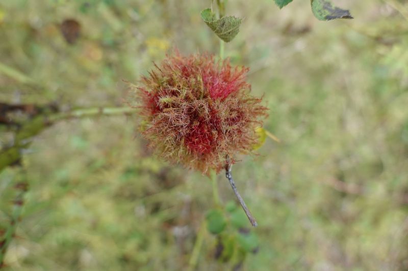 Wir sahen Schlehenbüsche und Nester der Rosengallwespe.