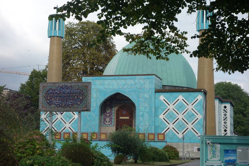 Nach unserer Ankunft in Hamburg sind wir noch an die Außenalster. Die Sonne strahlte kräftig vom Himmel und wir bekamen fast noch einen Sonnenbrand. Leider sind unsere Hüte im Auto geblieben, die hätten uns sehr geholfen. Auf unserem abendlichen Spaziergang kamen wir an einer Mosche vorbei.