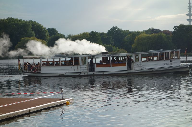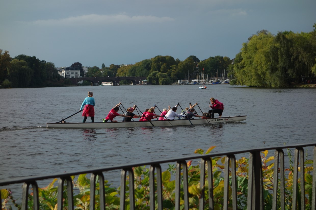 Auf der Alster war richtig was los. Paddel-, Tret- und Segelboote fuhren an uns vorbei.