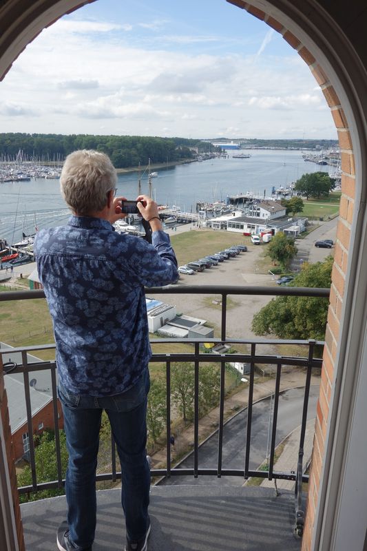 Heute lacht die Sonne wieder vom Himmel und so sehen wir uns nochmals Travemünde bei Sonnenschein an. Mir wurde gesagt, dass ich auf den Leuchtturm (Hus Blinkfüer) soll, also liefen wir dort hin.