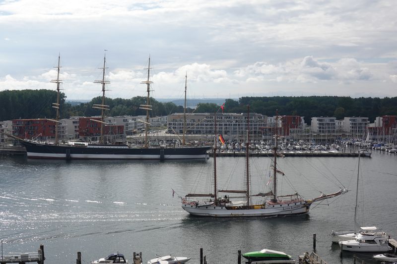 Bei einem Rundgang auf dem Balkon hatten wir Sicht auf die Segelschiffte