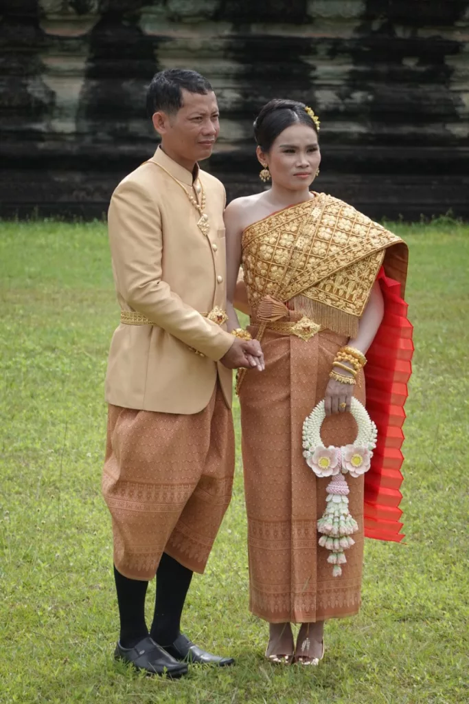 Als wir den Hauptteil von Angkor Watt verließen und auf die große Grünflache kamen, konnten wir wieder ganz viele Brautpaare mit ihren Fotografen sehen. Sie kommen alle hier her, um sich vor dieser Kulisse ablichten zu lassen.