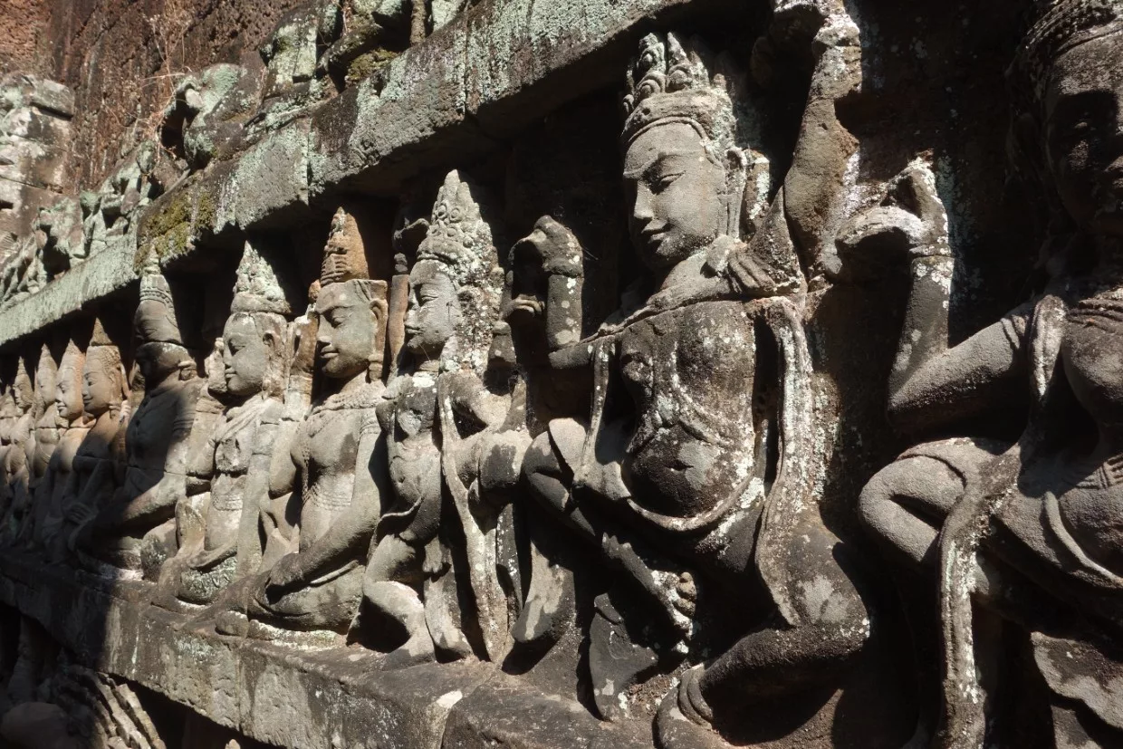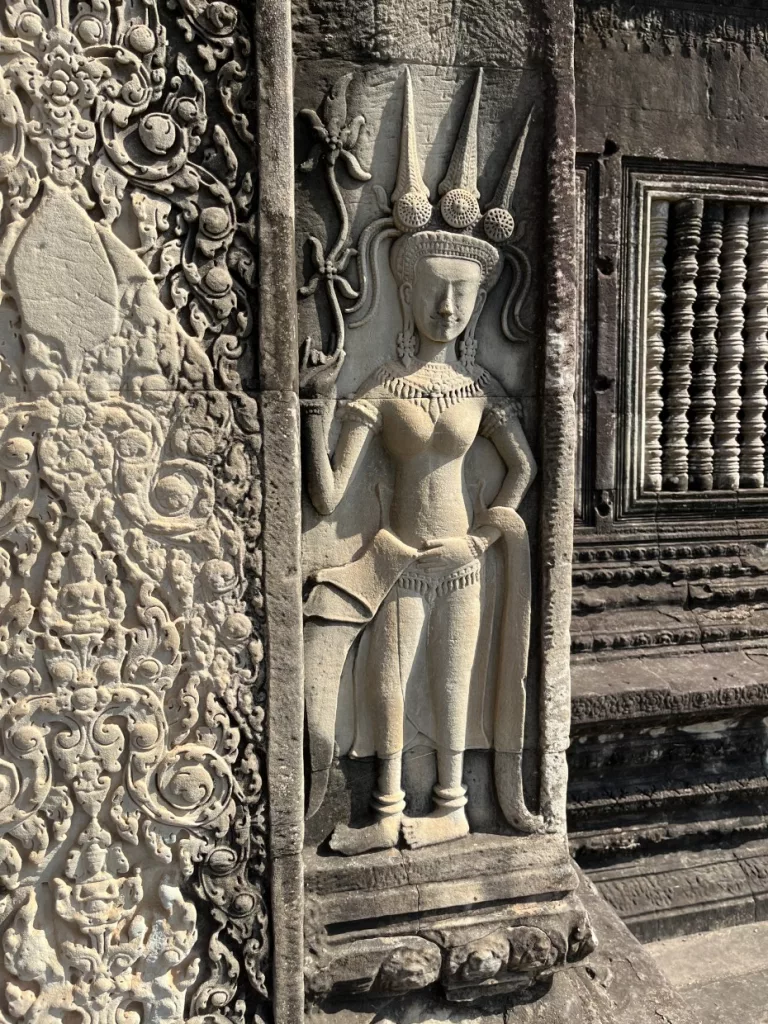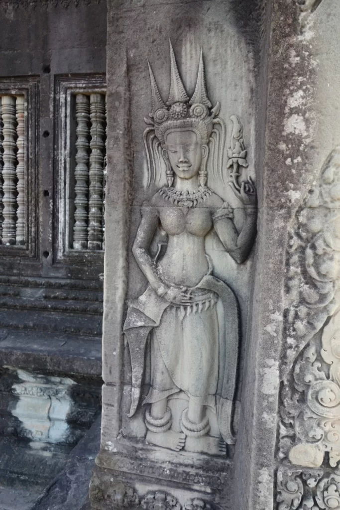 Die Tempelwände sind mit Devatas und Apsaras (Tänzerinnen) verziert von denen jede sich etwas von der anderen unterscheidet. Wahnsinnig, was da an Arbeit drinsteckt.