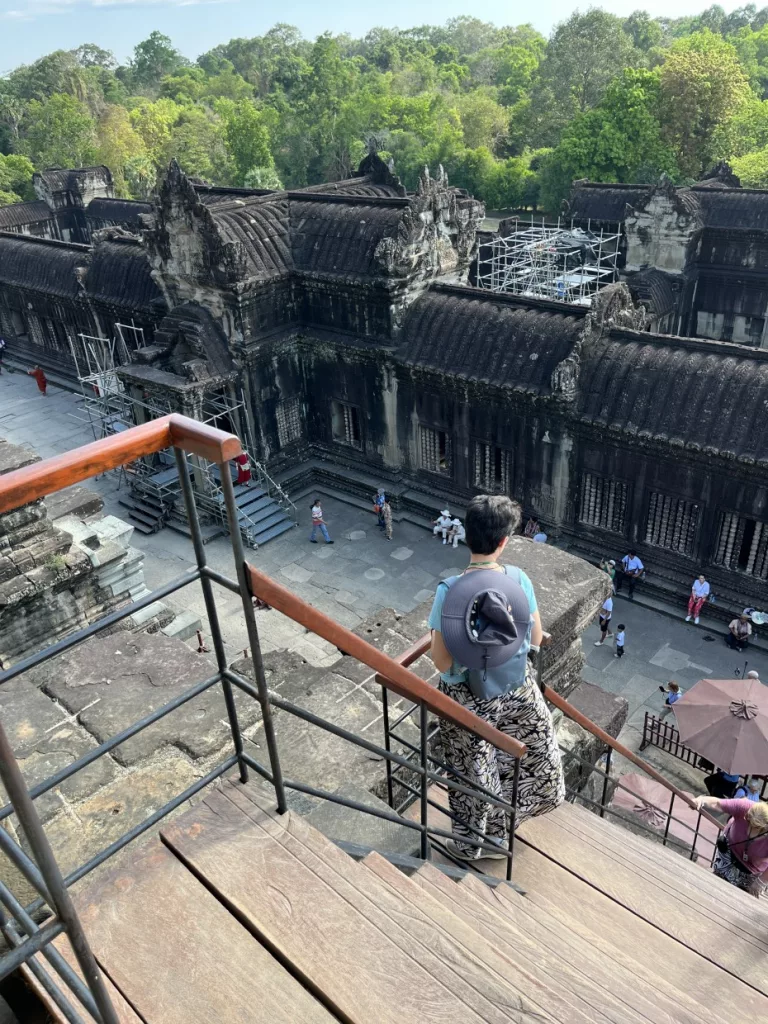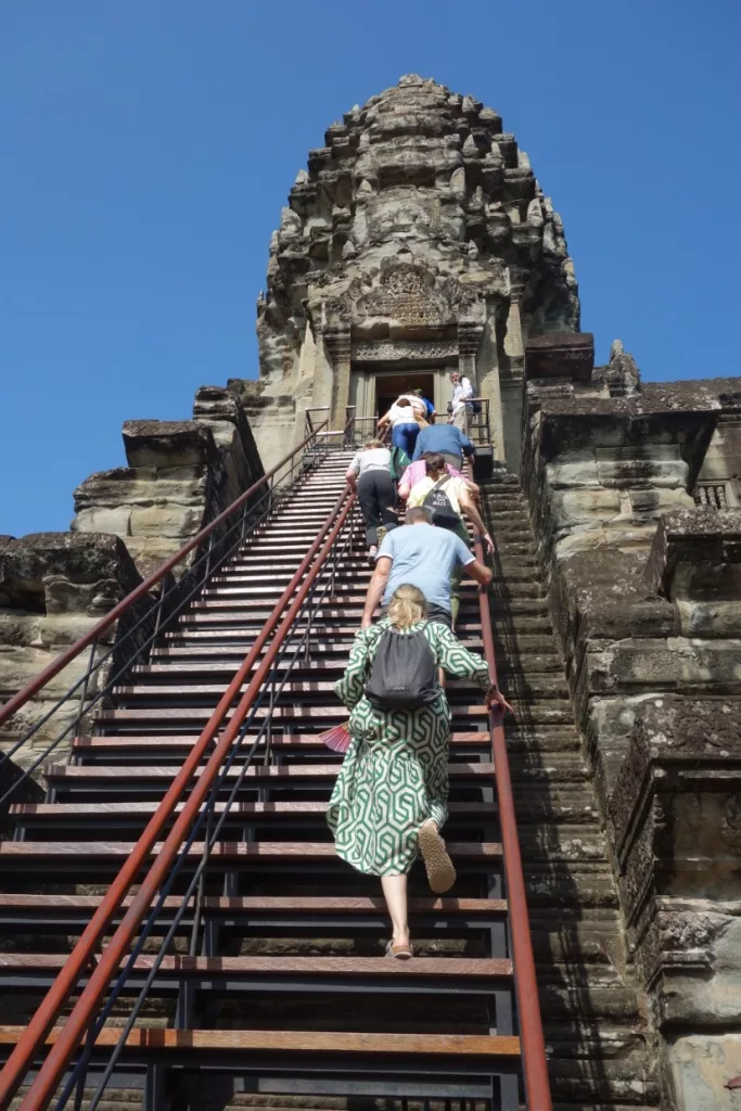Um auf die oberste Ebene, die mit den Türmen, zu gelangen, mussten wir eine steile Treppe erklimmen. Und das bei der Hitze. Oben angekommen mussten wir uns den Schweiß von der Stirn wischen und kräftig schnaufen.