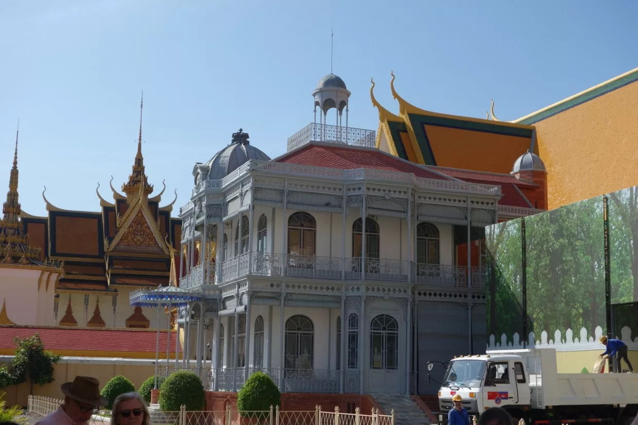 Schon auf dem Weg zum Eingang konnten wir feststellen, dass es in Kambodscha noch etwas heißer sein wird. Von unserer erfahrenen Reiseleiterin erfuhren wir ganz viel zur royalen Familie und den vielen verschiedenen Gebäude, die wir zu sehen bekamen. Die vielen Verzierungen an den Mauern haben alle eine tiefere religiöse Bedeutung.
