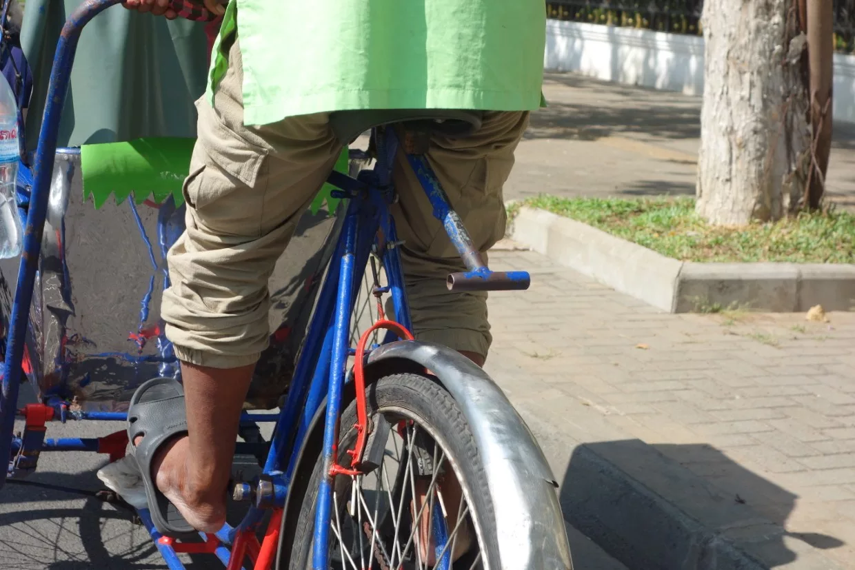 Uns taten die Männer richtig leid, bei den Temperaturen und der hohen Luftfeuchtigkeit jemanden durch die heiße Stadt fahren und das mit einem Rad ohne Gangschaltung und mit schlechten Bremsen. Uns wurde erzählt, dass dies Reisbauern sind, die dies gerne machen, um in der Trockenzeit Geld dazu zu verdienen.