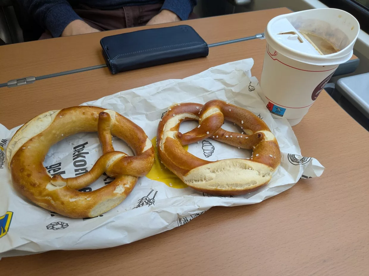 Die Reise ist wieder über Studiosus gebucht und so hat man Rail & Fly inklusiv. So kommt man ohne Auto mit dem Zug in der ersten Klasse zum Flughafen. Nach nur ein paar Minuten mussten wir in Singen umsteigen und weiter rollen wir nach Stuttgart. Im Zug kaufte Tom uns einen Kaffee zur Stärkung. Der sieht aber merkwürdig aus.