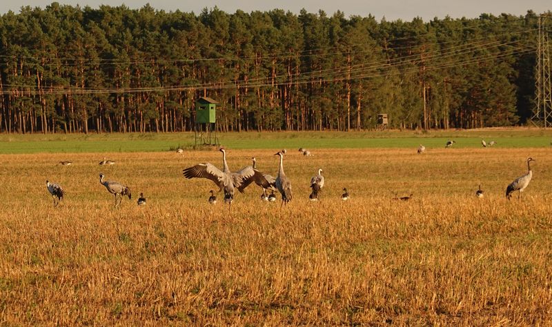 Auf der Heimfahrt konnten wir Kraniche auf einem Feld entdecken. So viele Vögel auf einem Fleck und das in freier Wildbahn. Einfach nur herrlich. Bis ich angehalten und Tom den Foto startklar hatte, sind schon ein paar von ihnen auf Sicherheitsabstand gegangen.
