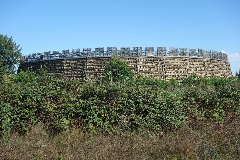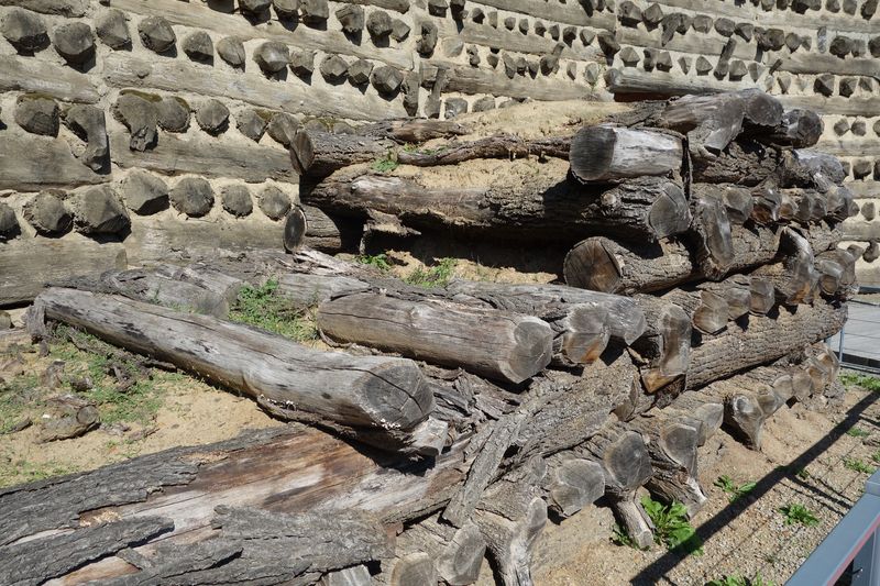 Auf einer kleinen Erhöhung wurde ein Rundbau mit einem 10 m breitem Wall und einem Durchmesser von ca. 60 Metern errichtet. Für die Umgrenzung wurden dicke Eichenbalken abwechselnd in Längs- und Querrichtung übereinandergelegt und die Zwischenräume mit Erde und Steinen verfüllt. Es wurden ca. 1500 Baumstämme benötigt für eine Burg!