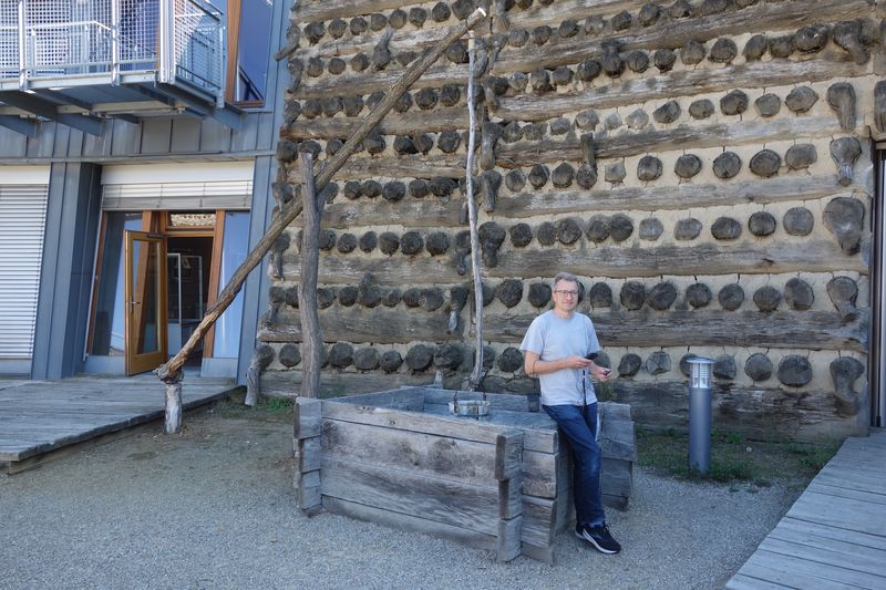 Es hatte gerade eine Führung gestartet und wir stellten uns frech in die Nähe und lauschten. So erfuhren wir, warum die Häuser mit Schlangen am Giebel verziert sind.