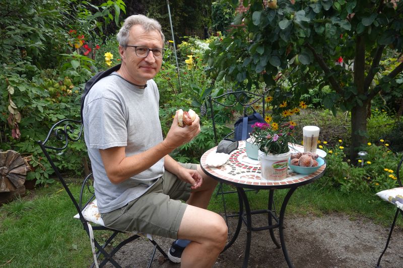 Nach so viel staubiger Vergangenheit machten wir eine Pause bei Kaffee mit Quarkkeulen und Bockwurst in der Semmel.