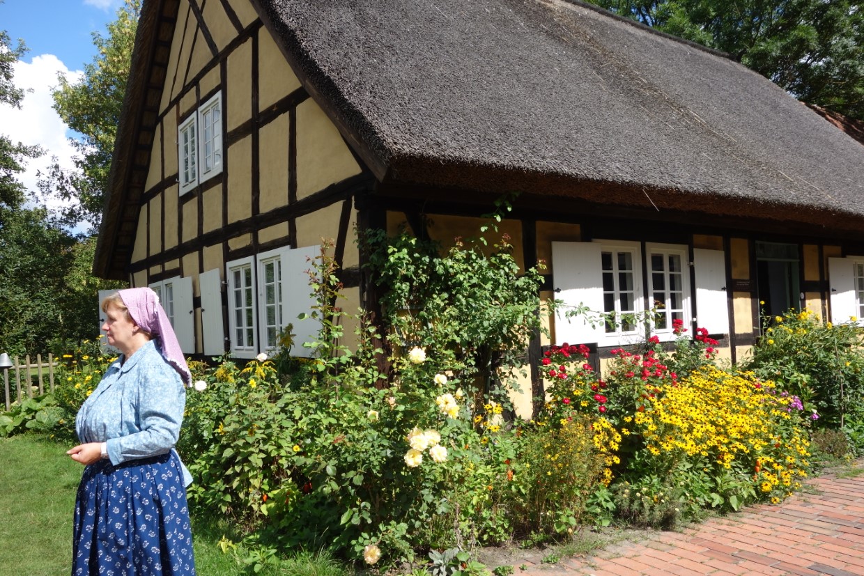 Um so mehr Platz das Wasser zum Hausbau ließ, um so größer wurden die Höfe. Das nachfolgende Haus stand ursprünglich am Rand des Spreewalds und stammt aus dem Jahr 1775. Im Innern konnten wir die Kleidung einer Braut bewundern.