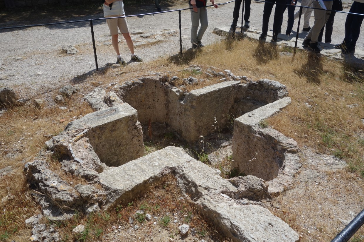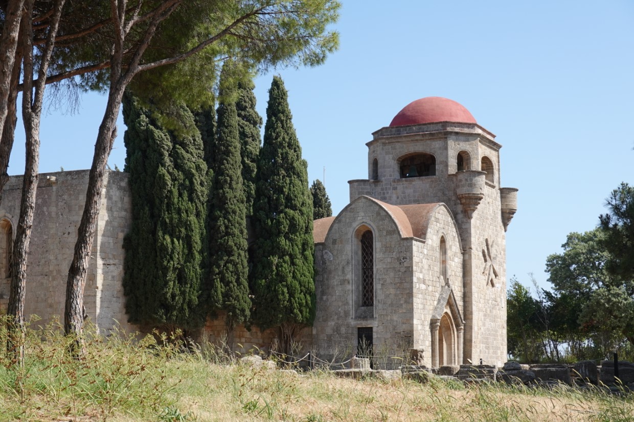 Nach dieser Verschnaufspause ging unsere Tour mit übervollen Bäuchen weiter auf den 297 m hohen Berg Filerimos (auch Phileremos oder Philermos). Hier stand die Akropolis der antike Stadt Ialyssos. Wir sahen Überreste aus verschiedenen Epochen. Ein Brunnenhaus aus dem 4. Jahrhundert v. Chr., Säulenteile vom Tempel der Athene aus dem 2. Jahrhundert, ein Taufbecken der Basilika aus dem 5. Jahrhundert und Teile der Byzantinischen Kirche.