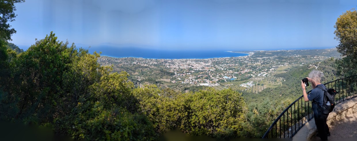 Heute ist die erste Rhodos Wanderung, die auf dem Programm steht. Nikos versprach uns, dass es eine ca. 3-stündige, etwas anspruchsvollere Wanderung werden soll. Um 8.30 Uhr versammelte sich die Gruppe am Hafen, wo unser Bus abfährt. Auf der Fahrt zum Startpunkt erzählte uns der Reiseleiter wie die Wanderstrecke aussieht und was er sich noch alles für uns ausgedacht hat. Der Weg verläuft zuerst bergauf, geht dann in einen Ziegenpfad über und kommt dann an der Kalopetra Monastery vorbei. Wenn der Mönch anwesend sei, könnten wir das kleine Kloster besichtigen. Danach wollen wir über das Tal der Schmetterlinge absteigen und am Ende wartet dann der Bus auf uns, der uns zu einer Weinprobe und kleinem Mittagsessen bringen wird. Danach steht noch ein Besuch in der antiken Stadt Ialyssos an. Wow, klingt nach einem vollen Tag.