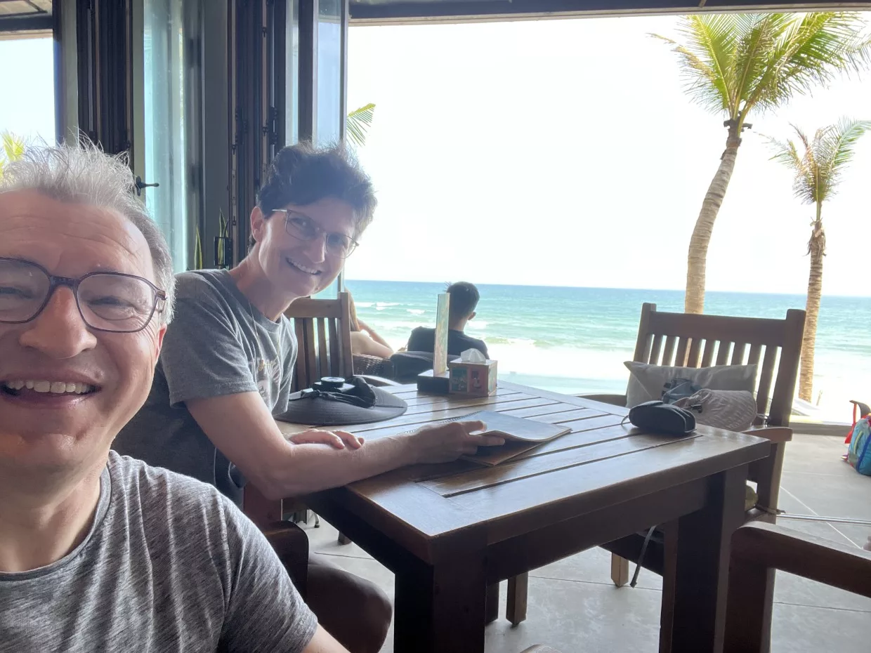Auf der anderen Seite des kleinen Gebirgszugs kamen wir recht schnell ans Meer und in den Ort Da Nang. Hier stiegen wir wieder aus und konnten im Restaurant etwas Essen oder im Südchinesischen Meer baden. Tom und ich bestellten uns lieber etwas zum Essen und wir genossen die Aussicht aufs Meer und die leichte erfrischende Briese, die hereinwehte.
