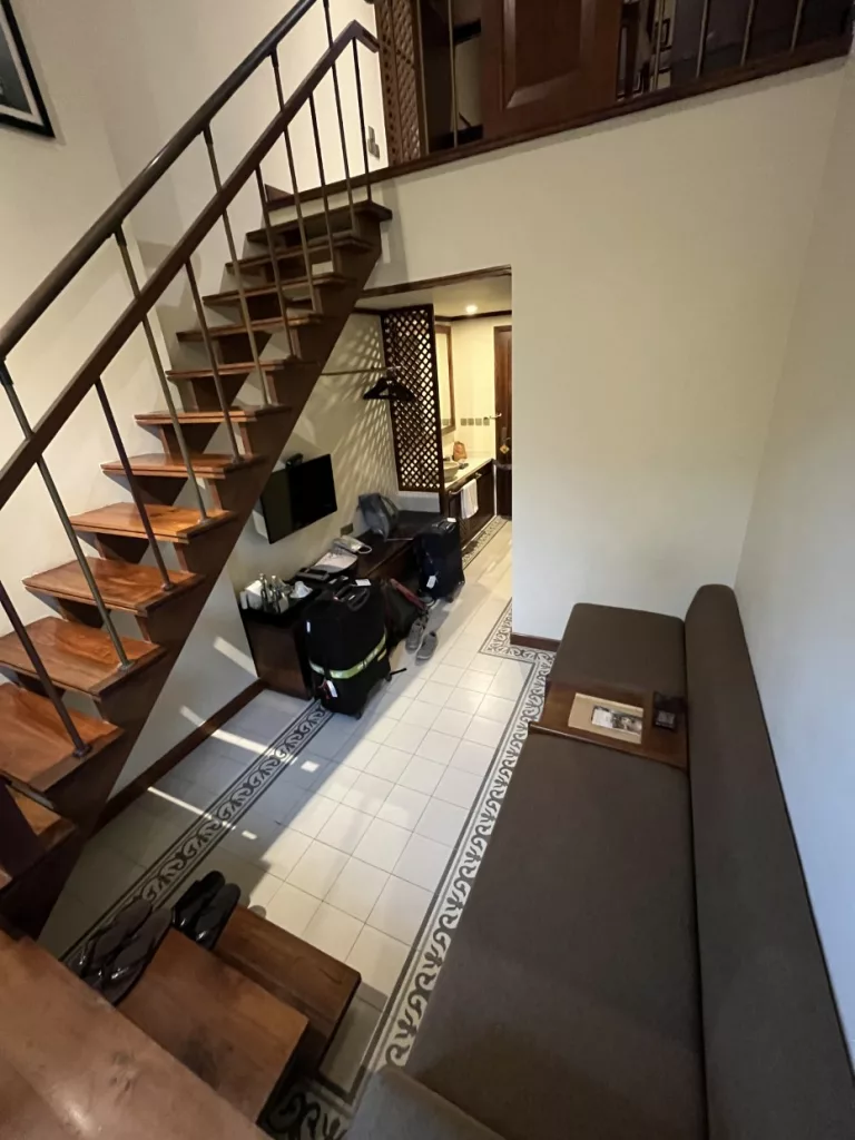 Um 14.00 Uhr zogen wir im Hotel in Hoi An ein. Die Anlage sieht sehr gepflegt aus und der Swimmingpool lädt zu einem Bad ein, aber unser Guide ließ uns nur eine Stunde Zeit bis sie uns für einen Stadtbummel zusammentrommelte. So bezogen wir dieses, mal etwas andere Zimmer (unten Bad und Sofa, oben ein Doppelbett), machten uns kurz frisch und packten in die Handtasche zwei kleine Schirme. Es wurde Regen für den Abend vorhergesagt.