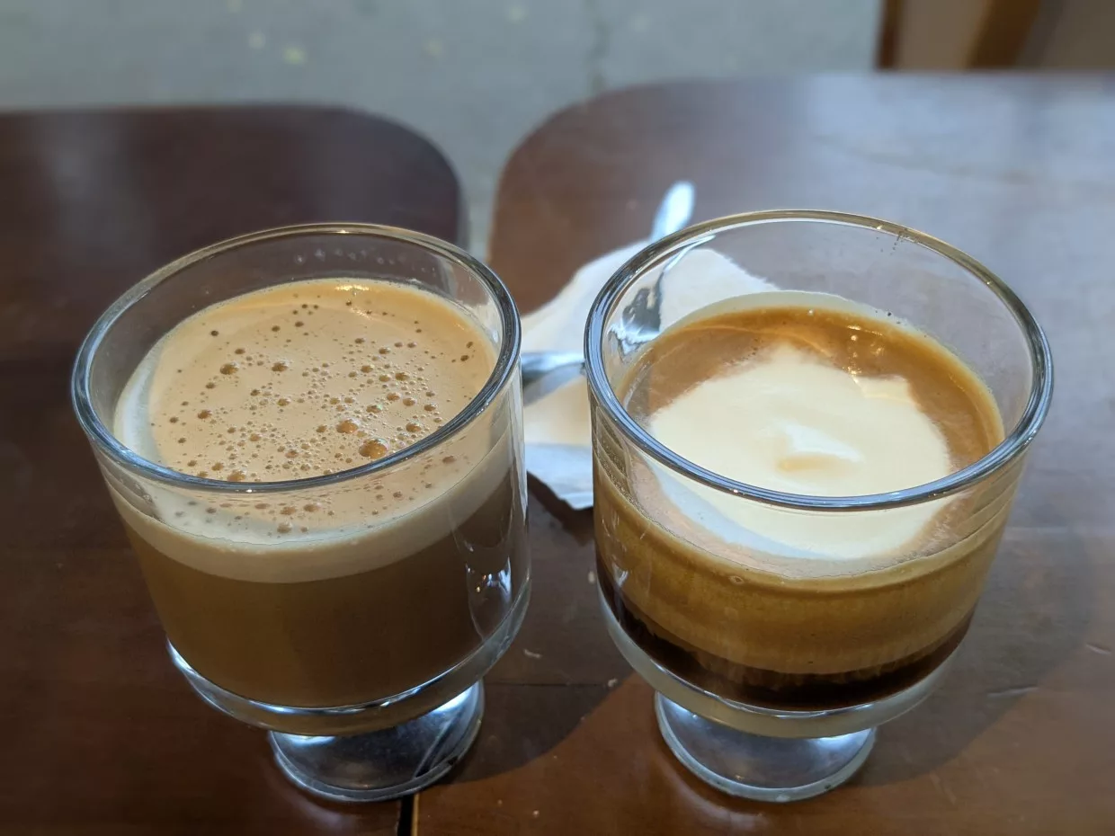 Wir probierten heute einmal einen Kaffee mit Kokosmilch und einen Salzkaffee. Dieser wird mit steifgeschlagener Sahne serviert und schmeckt nur leicht salzig, war aber recht stark.