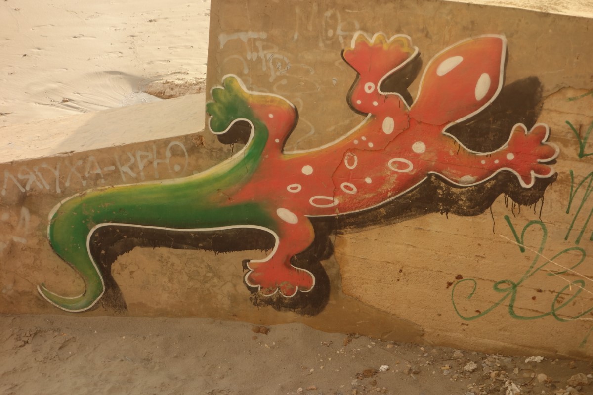 Diesmal war es noch hell genug, um den Abstieg zum Meer zu wagen. Hier gibt es sogar ein Springbrett ins kühle Nass.