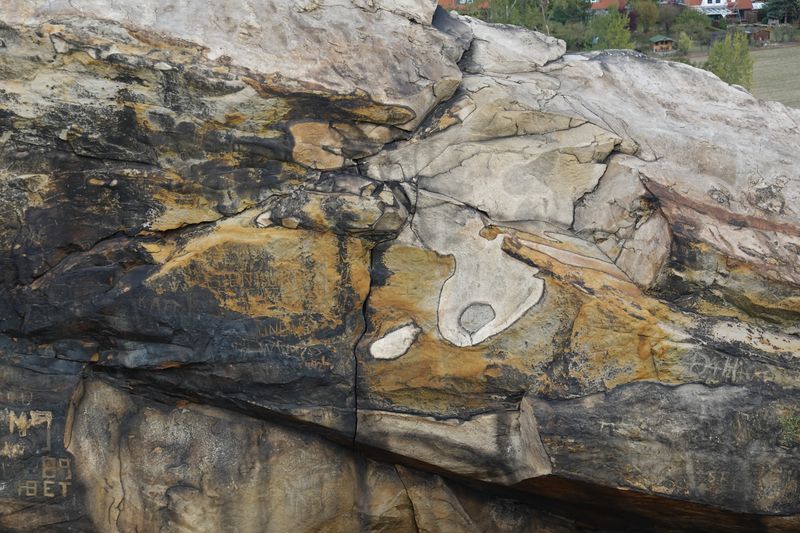 Der Stein ist durch Kieselsäure verfestigter Sandstein, der von der Witterung nicht so gut abgetragen wurde wie das andere Gestein.