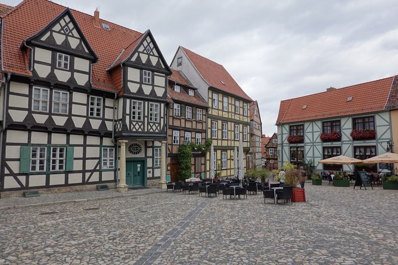 Quedlinburg hat sehr viele Fachwerkhäuser, die fast alle renoviert sind. Die Straßen sind sehr eng und mit Kopfstein gepflastert, so dass fast keine Autos durchfahren.