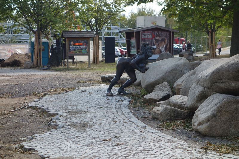 Nach dem empfohlenen Hexentanzplatz fuhren wir weiter zur nächsten Empfehlung, der Teufelsmauer. Auf dem Weg dorthin sagte unser Navi: „Nehmen Sie im Kreisverkehr die zweite Ausfahrt und fahren…“ Tom befuhr den Kreisverkehr, setzt den Blinker und das Navi: „Nein-!„ Tom ging schon vom Gas runter, seit wann sagt das Navi NEIN? Was hat er falsch gemacht? Da kommt aus dem Lautspreche: „und nehmen die Neinstedterstraße“. Ach so, die Straße heißt so.