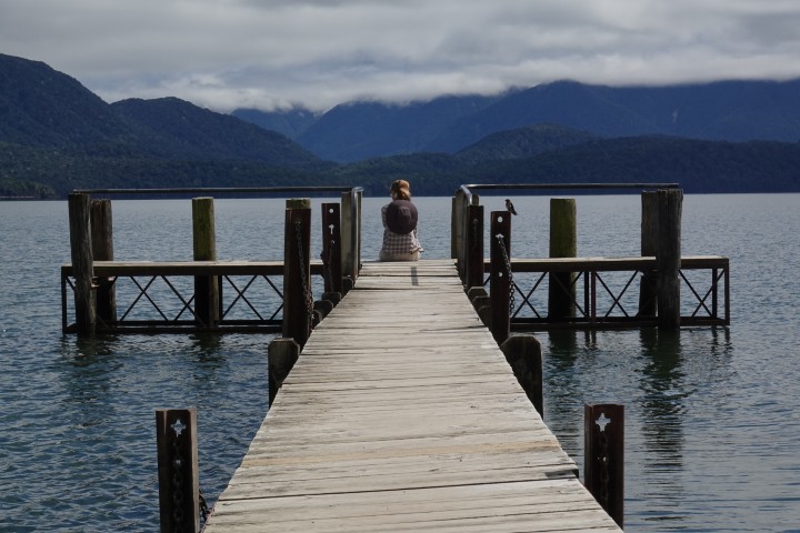 Wir wurden morgens von unseren Gastgebern mit einem gedeckten Frühstückstisch erwartet. Während wir verwöhnt wurden erzählte uns die Hausherrin von Te Anau, das in den Fjordlands liegt, und dass die Straße von dort zum Milford Sound weggespült wurde und man dort nicht hinfahren kann. Mist, so geht unser Plan nicht ganz auf. Aber sie machte uns auf eine andere Möglichkeit aufmerksam, für die wir allerdings mehr Zeit benötigen würden. Wir sollen von Te Anau aus einen Ausflug per Boot und Bus in den Doubtful Sound machen. Das sei genauso schön und nicht so bekannt. Oder, wenn wir nur eine Nacht dort sind, in die Glühwürmchenhöhle (glowworm cave) gehen. Als Tom das hörte und wir etwas darüber nachgedacht hatten, versuchten wir unsere nächste Herberge zu verlängern. Das hat problemlos geklappt und so fuhren wir frohen Mutes los. In der Nacht hatte es geregnet und auch unterwegs wechselten sich die Niederschlagsmengen ab, aber so richtig toll wollte das Wetter bisher nicht werden. Nach einem Kaffee-Stopp in dem von unserer „Reisemanagerin“ empfohlenen Café, überlegten wir, ob wir einfach früher am nächsten Ziel ankommen sollen, um an unserem Blog (bei dem wir im Hintertreffen sind) weiterzuarbeiten. Doch dann kam ein bisschen die Sonne durch und wir machten einen Abstecher (14 Kilometer, davon 8 Kilometer auf Schotterstraße) zum Lake Monowai. Hier schien die Sonne und wir machten eine kleine Wanderung zu einem Aussichtspunkt.