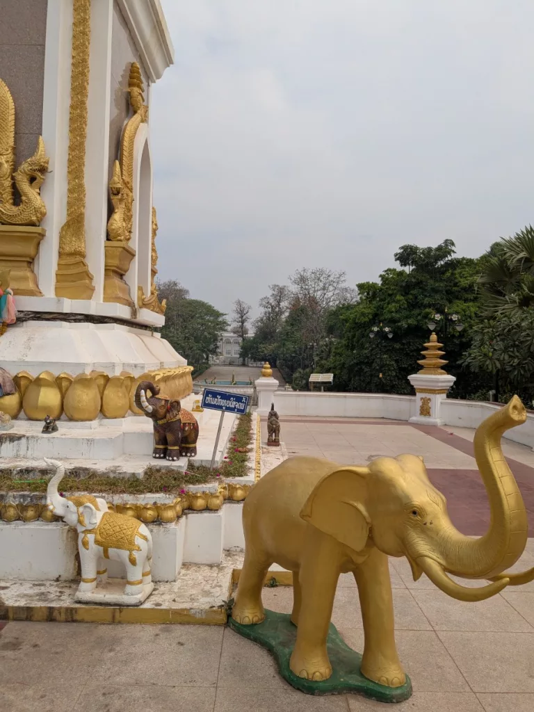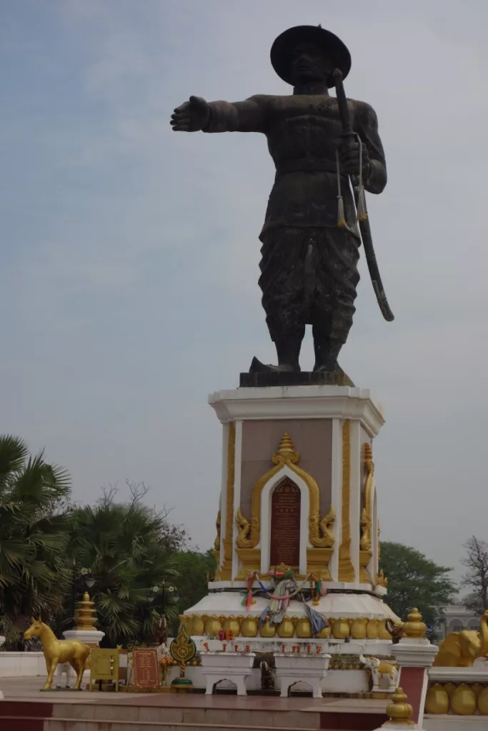 Auf diese Art und Weise näherten wir uns von hinten der Statue von Chao Anouvong, geboren 1767 in Vientiane; er war zwischen 1805 und 1828 König des laotischen Königreiches.