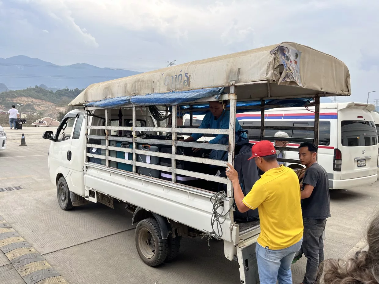In Luang Prabang erwarteten uns die nächsten Transportmittel. Diesmal wurden die Koffer separat verladen und wir durften uns auf 4 Minibusse verteilen.