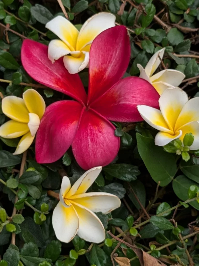 Aber trotzdem war es sehr schön die für uns exotischen Pflanzen und Blüten (hier im Bild verschiedenfarbige Frangipanie) zu sehen.