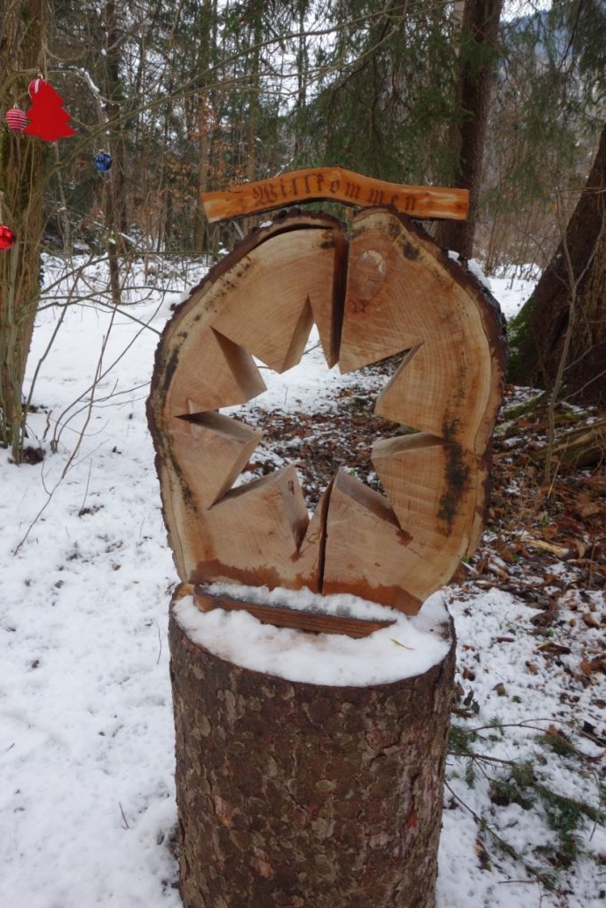 Da der Weg stellenweise sehr rutschig und vereist war, mussten wir bei jedem Schritt aufpassen. Hier wollten wir nicht durch Unachtsamkeit die Bänder zerren oder gar die Knochen brechen. Es könnte länger dauern, bis hier Hilfe naht. Bisher kam uns nur einmal ein Mann entgegen. Die Streckenführung verlief dann weiter auf einer Höhe zum Fritzen See.