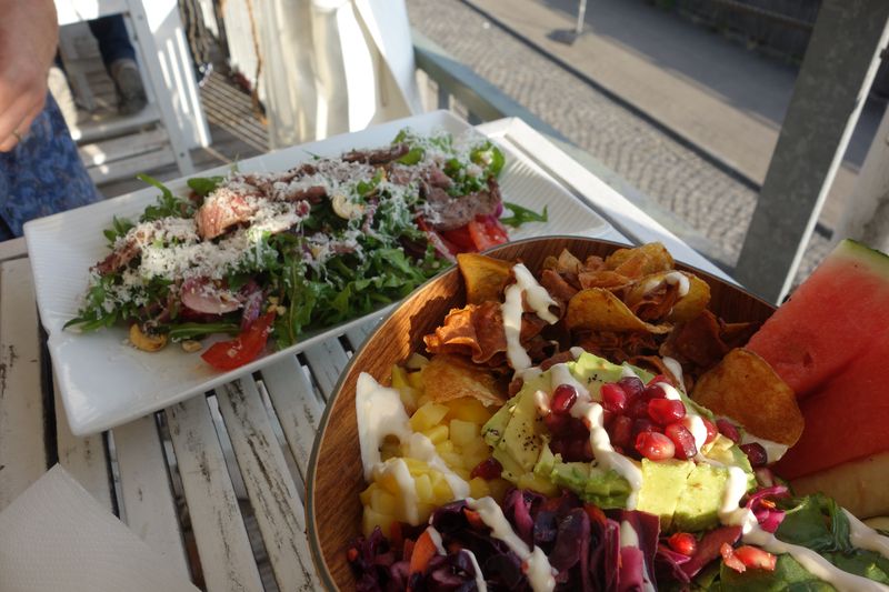 Wir genossen unser Abendmahl beim Sonnenuntergang in einer Beachbar mit Blick auf dieses wahnsinnsteure Gebäude. Nach der Stärkung fuhren wir noch zur Reeperbahn raus.